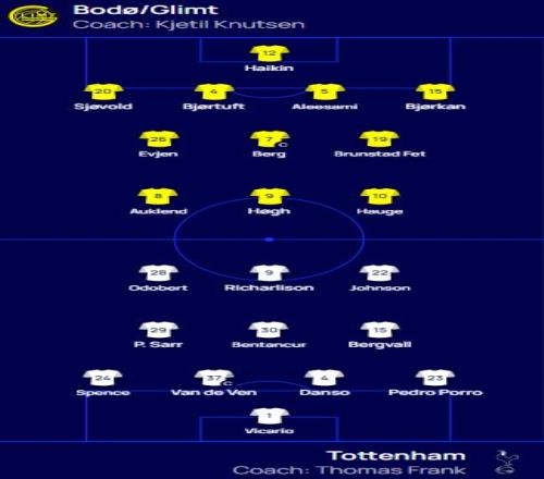 雷速體育10月1日?qǐng)?bào)道宣稱 歐冠聯(lián)賽階段第二輪,博德閃耀主場(chǎng)迎戰(zhàn)熱刺。賽前兩隊(duì)首發(fā)陣容出爐。