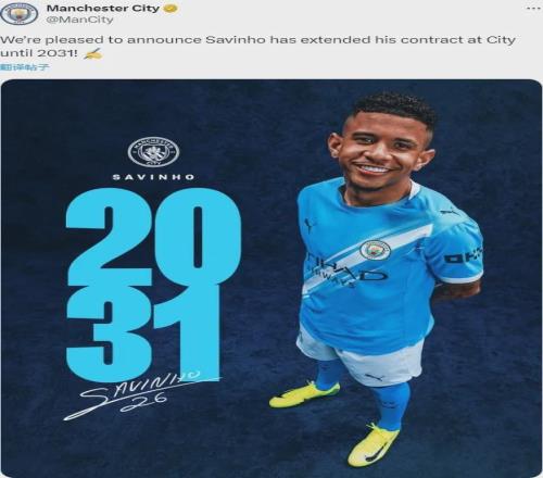 官方:曼城宣布和薩維尼奧續(xù)約到了2031年。