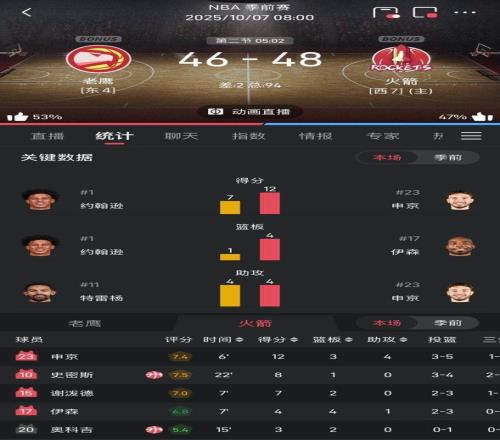 有細(xì)心的雷速老哥也許發(fā)現(xiàn)了,NBA季前賽出現(xiàn)多場比賽數(shù)據(jù)和實(shí)際轉(zhuǎn)播畫面不符的情況,例如今日老鷹對陣火箭的比賽。