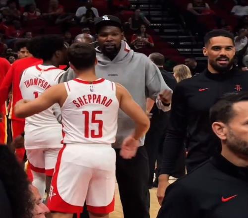 火箭今夏交易來(lái)的凱文-杜蘭特缺席了季前賽第一場(chǎng)。